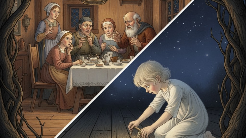 Ngày xưa, có một gia đình đang ngồi ăn cơm thì một người bạn thân bất ngờ nhìn thấy một đứa trẻ lạ xuất hiện. Đứa trẻ mặc áo trắng, gương mặt xanh xao, lặng lẽ đi vào căn phòng bên cạnh rồi lại bước ra.