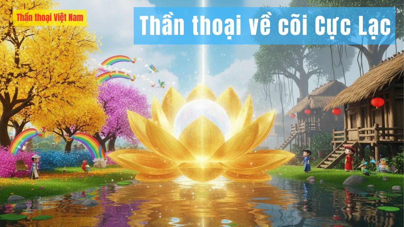 Những hồn người hiền đức được ở cõi Cực Lạc. Chốn này ở phía cực Tây phương cách xa cõi trần hàng mấy nghìn thế giới. Bốn phía cõi này đều khép chặt, có bảy tầng đài, với bảy hàng cây cành lá toàn bằng ngọc, phát ra điệu nhạc mỗi khi gió nhẹ thoảng qua. Có những hồ sen hoa nở muôn đời, cát bằng vàng ròng dưới đáy nước, ven hồ cỏ bằng bảy sắc ngọc. Các loài chim đều lông ngũ sắc, tiếng hót lên thành lời ca hát đạo đức. Mưa toàn bằng hoa phủ lên mặt đất.