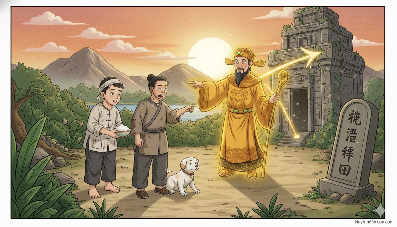 Ngày xưa, ở vùng đất Sơn Tây có hai anh em nghèo khó nhưng sống hiền lành, nhân hậu. Một ngày nọ, họ gặp một ông lão ăn mày kỳ lạ - không ai ngờ rằng, đó chính là vị Thần giữ cửa kho vàng đang thử lòng người phàm...